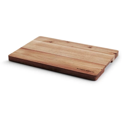 I lager. MARKUS SKÄRBRÄDA ACCACIA 31000 Lägg i korgen Trevlig skärbräda i accacia med infrästa handtag på kortsidorna, perfekt storlek för vardagsbestyren. Storlek: 45 x 30 x 2,5 cm. Levereras i en färgkartong.